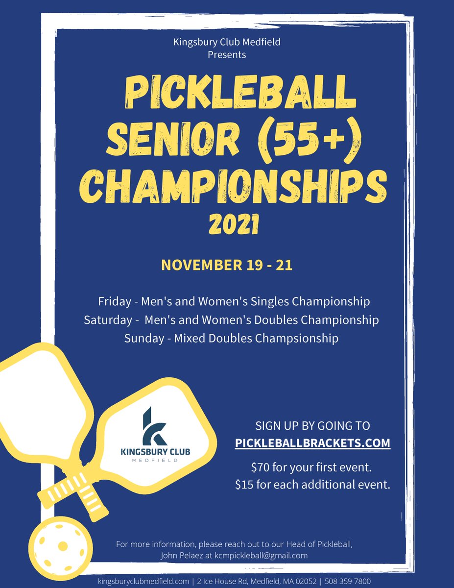 DOWNLOAD THE KINGSBURY CLUB MEDFIELD APP NOT OUR SISTER CLUB KINGSBURY CLUB. Kingsbury Club Medfield Winter Senior 55 Championships. Featuring Tennis Pickleball Fitness Basketball.
